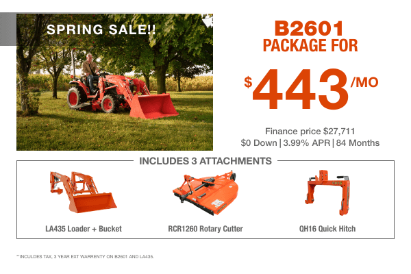 KUBOTA B2601 LOADER & CUTTER PACKAGE